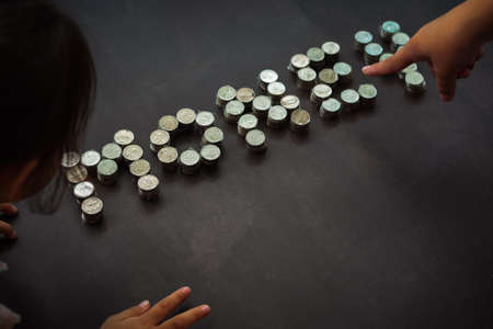 Coins of Malaysia. Financial Planning concept .The coins are arranged in value. Wrapped with clear tape for easy exchange at the shop.
