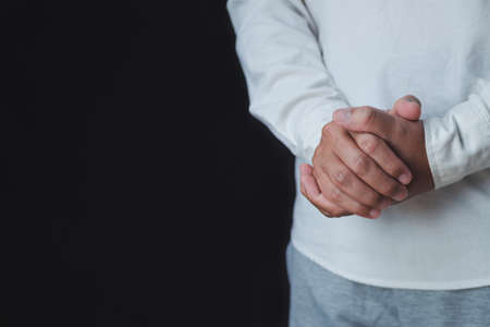 businessman hand praying and worship to GOD Using hands to pray in religious beliefs and worship christian in the church or in general locations in vintage black tone or copy space.