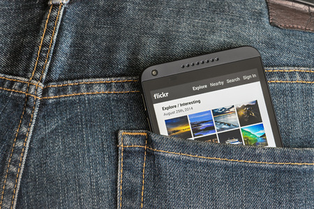Moscow, Russia - August 26, 2014: Flickr service is intended for storage and later use by the user of digital photos. As of August 4, 2011 in the database service had more than 6 billion images