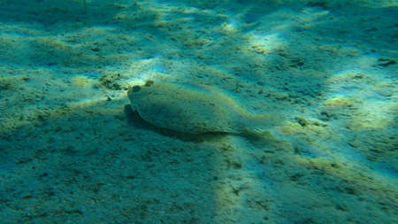 Wide-eyed flounder (Bothus podas) undersea, Aegean Sea, Greece, Syros island, Azolimnos beach