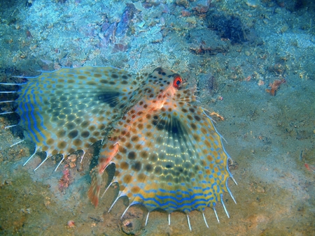 Oriental flying Gurnard (Dactyloptena Orientalis) on the ground in the filipino sea December 30, 2011
