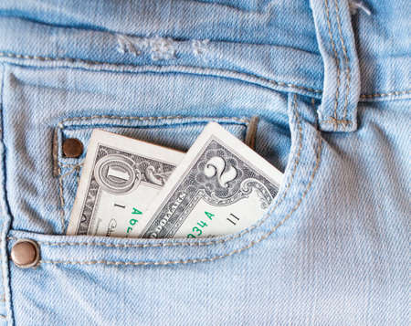 two dollar in pocket of blue jeans