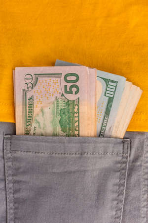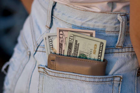 dollar banknotes. money in your pocket. paper money, currency, cash. close-up. finance, payments