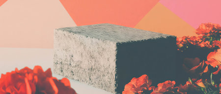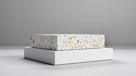 Square terrazzo stone podium display mock up with copy space for banner. Generative Ai