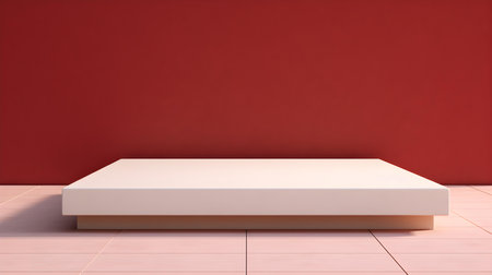 Square Stone Podium in front of a red Studio Background. White Pedestal for Product Presentation