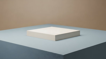 3d render of a white pedestal on a blue and beige background