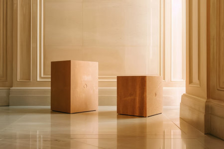 AI Generated. A mix of square and triangular plinths in different sizes creating a visually interesting display