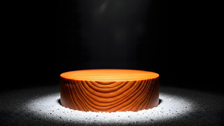 Wooden podium on a black background with smoke. 3d rendering