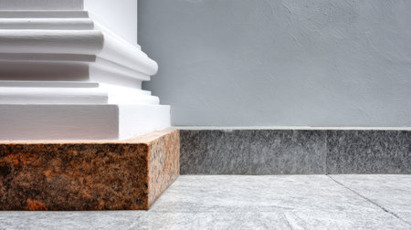 This image captures the intricate details of stone and marble textures in a modern interior design, showcasing architectural elegance and minimalist style.
