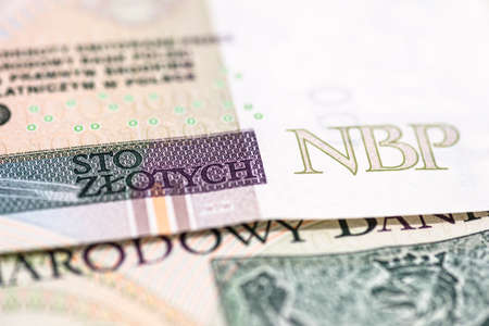 Money and savings concept. 100's polish zloty banknotes currency as background