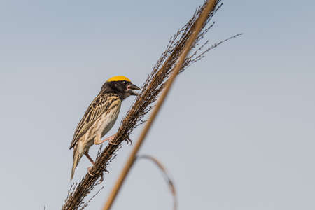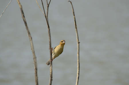 Streaked weaver perched, Ploceus manyar. The streaked weaver is a species of weaver bird found in South Asia. These are not as common as the baya weaver but are similar looking but have streaked underparts.