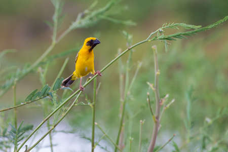 Beautiful Asian golden weaver perched on a branch.