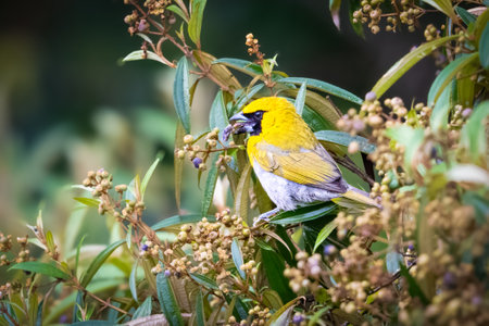 Male Village weaver (Ploceus cucullatus), also known as the spotted-backed weaver or black-headed weaver