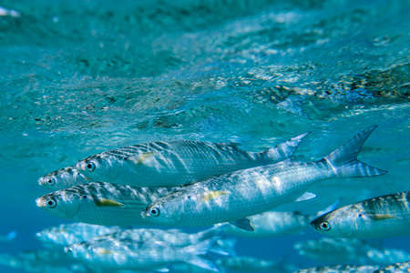 School of mullet fish swimming in ocean