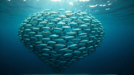 Stunning school of fish forming a heart shape underwater, symbolizing unity and love