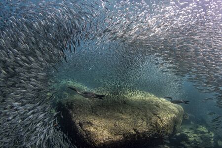 inside a giant sardines school of fish bait ball