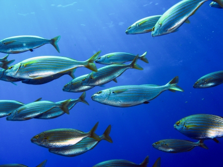 school of fish salema in the water of Liguria Italy