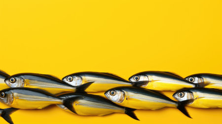 A group of fish that are standing in a row. Generative AI image.