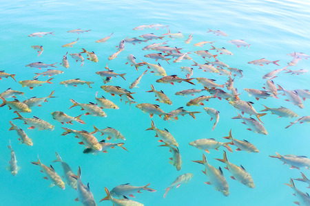 Fishes in clear tropical sea water. Natural background.