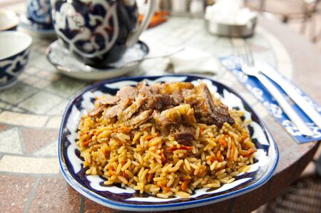 Uzbek national food - pilaf with meat
