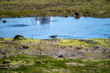ruddy turnstone bird in habitat for food search