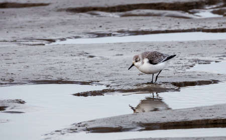 stilt walker or calidris alba bird at the coastline in holland