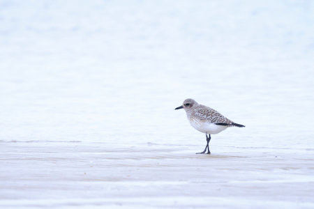 Close-up of a black-bellied plover or gray plover, pluvialis squatarola, bird foraging and perched on a beach