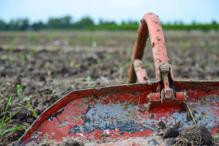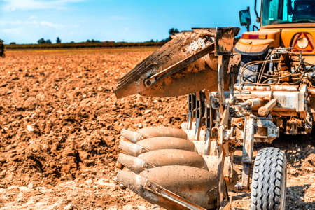 close-up of the plow during soil tillage