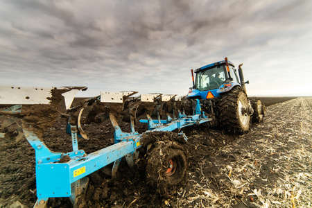tractor with plough (plow) close up
