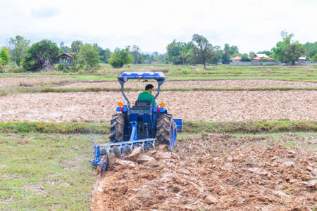 farmer ride tractor truck in rice field
