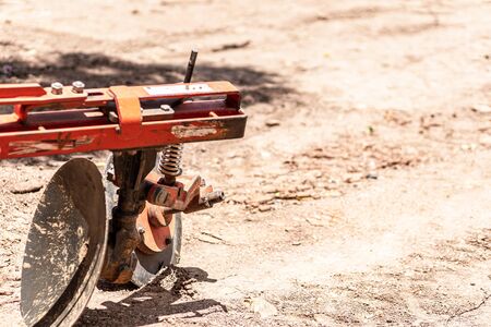 Disc harrow used to cultivate the soil. Close up.