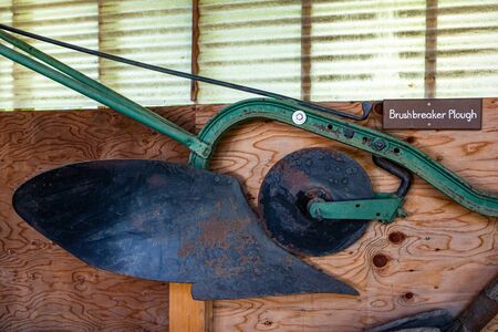 Antique agricultural equipment used in the early 20th century by farmers. Agricultural machinery museum in Kootenays, British Columbia, Canada