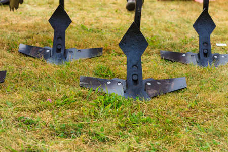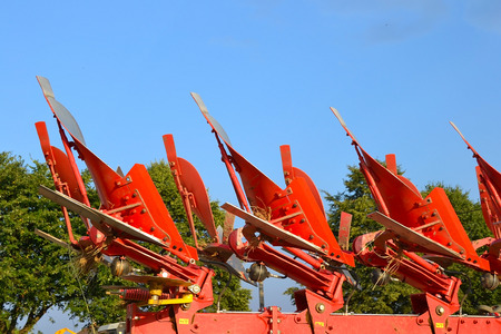 Agriculture equipment. Plough agricultural machinery, detail view.