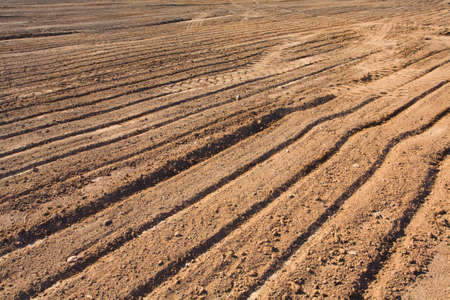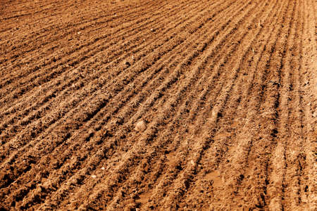 Plowed field. Agriculture, soil before sowing. Fertile land texture, rural field landscape.