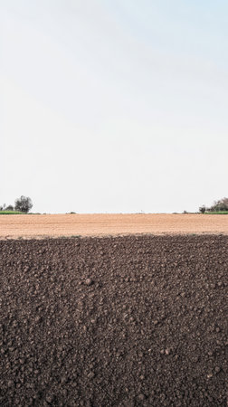 Close-up of freshly tilled soil, with empty space in the surrounding area for copy or branding