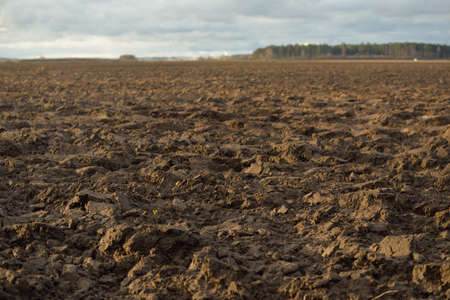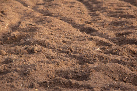 Soil for cultivation. Ploughed field.