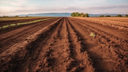 Fertile Farmland: Capturing the Beauty of Cultivated Plowed Soil in Agricultural Fields