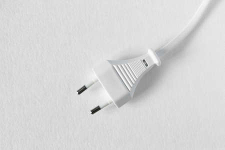 A simple white electrical plug is inserted into a wall outlet, showcasing a clean and modern aesthetic suitable for home decor and interior design applications.