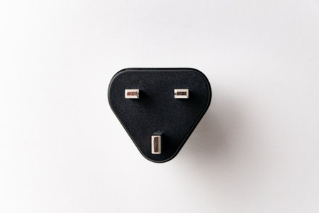 Black socket travel charger for USB port output. USB electronics device charger isolated,