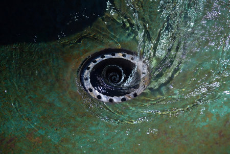 Swirl of water flows down the drain in the bathroom