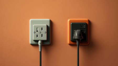 A stylish depiction of colorful electrical outlets set against vibrant wall paints, showcasing modern interior design and practical home aesthetics.