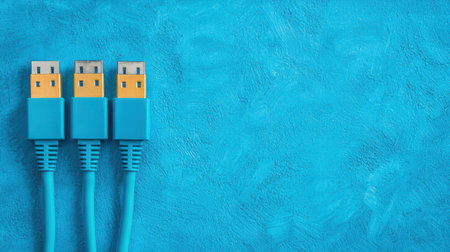 Minimalist photo of Ethernet connectors framed by textured blue backdrop, concept of high-speed data and connectivity essentials