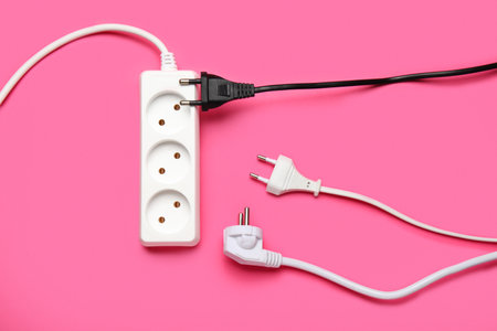 power supply concept, electricity theft and illegal connections electrical wire and plug, mains filter with plug connector