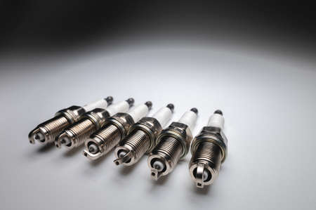 White plastic and metal pins power plug close up macro shot isolated on white.