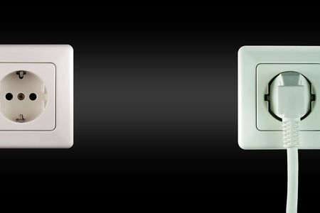 Electrical system plug and cable. Accessories for powering electrical devices. Dark background.