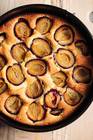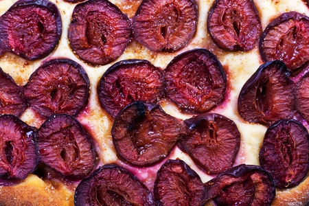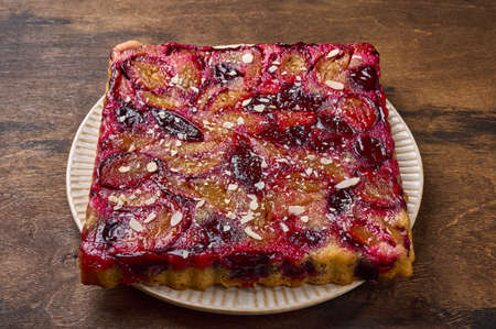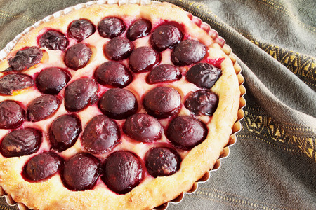Homemade plum pie. Original Purple Plum Torte.