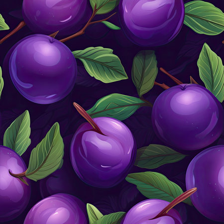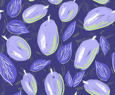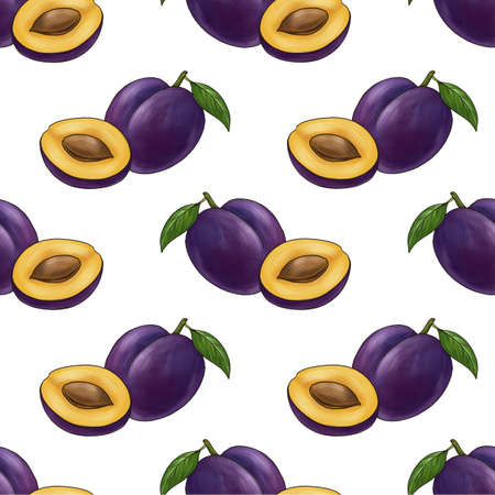 Illustration on theme big colored seamless purple plum, bright fruit pattern for seal. Fruit pattern consisting of beautiful seamless repeat plum. Simple colorful pattern fruit from seamless plum.