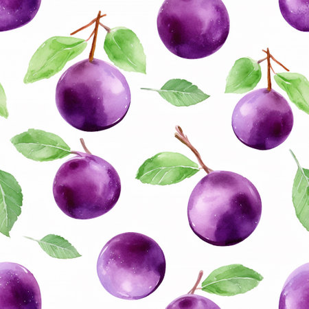 Fruit plum watercolor vector seamless berry background Isolated food illustration