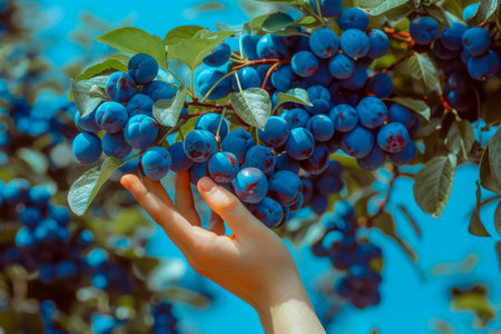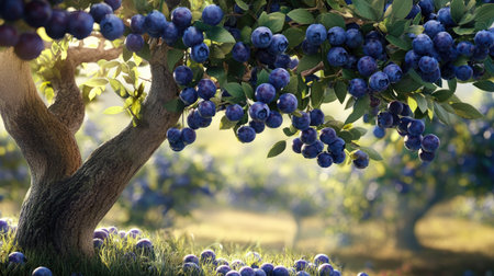 Tree full of ripe blueberries, showcasing a rich harvest. Perfect for agricultural and berry farming themes.