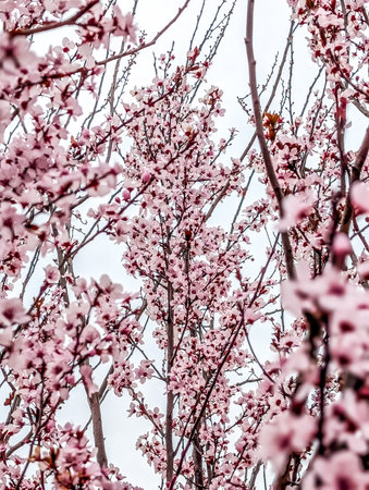 Blossoming prunus cerasifera cherry plum springtime pink flowers